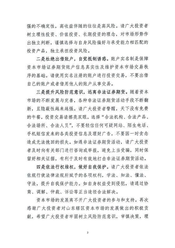 理性熟悉市场 投资实事求是—致宽大投资者的一封信